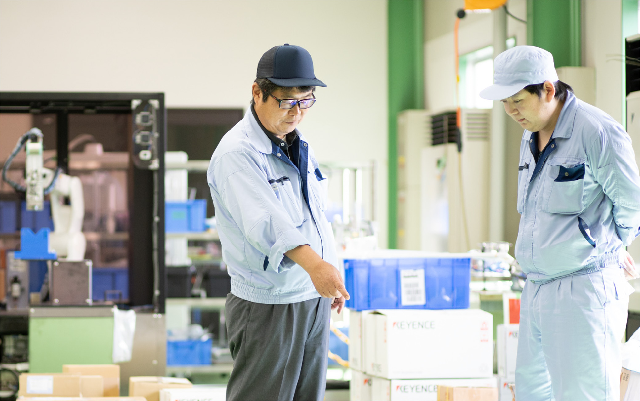 智頭電機がお客様から選ばれるのは、どんなに難しい案件でもお客様が納得するところまでとことん付き合うから。さらに、納品後のアフターフォローも大切にしており、丁寧な仕事ぶりでお客様に喜ばれています。昔、大手企業から他社ではできなかった設備開発をお願いできないかと依頼されたことがありました。当時はノウハウもありませんでしたが一から体制を組んで、メンバー全員で協力し納品することができました。その案件でお客様から認められて、今では海外工場なども含めた大型案件を任せていただいています。まさに、岡山工場の歴史を変えた案件でしたね。その案件があったから、今の岡山工場があるといっても過言ではないでしょう。その根底にあるのは、決して逃げない姿勢からです。智頭電機なら何とかしてくれるはずという信頼を築くことができたからこそ、新しい相談が舞い込んでくる。信頼と実績こそが、最強の営業ツールなのです。これからも変わらずに、お客様からの信頼に応えていきたいと思います。